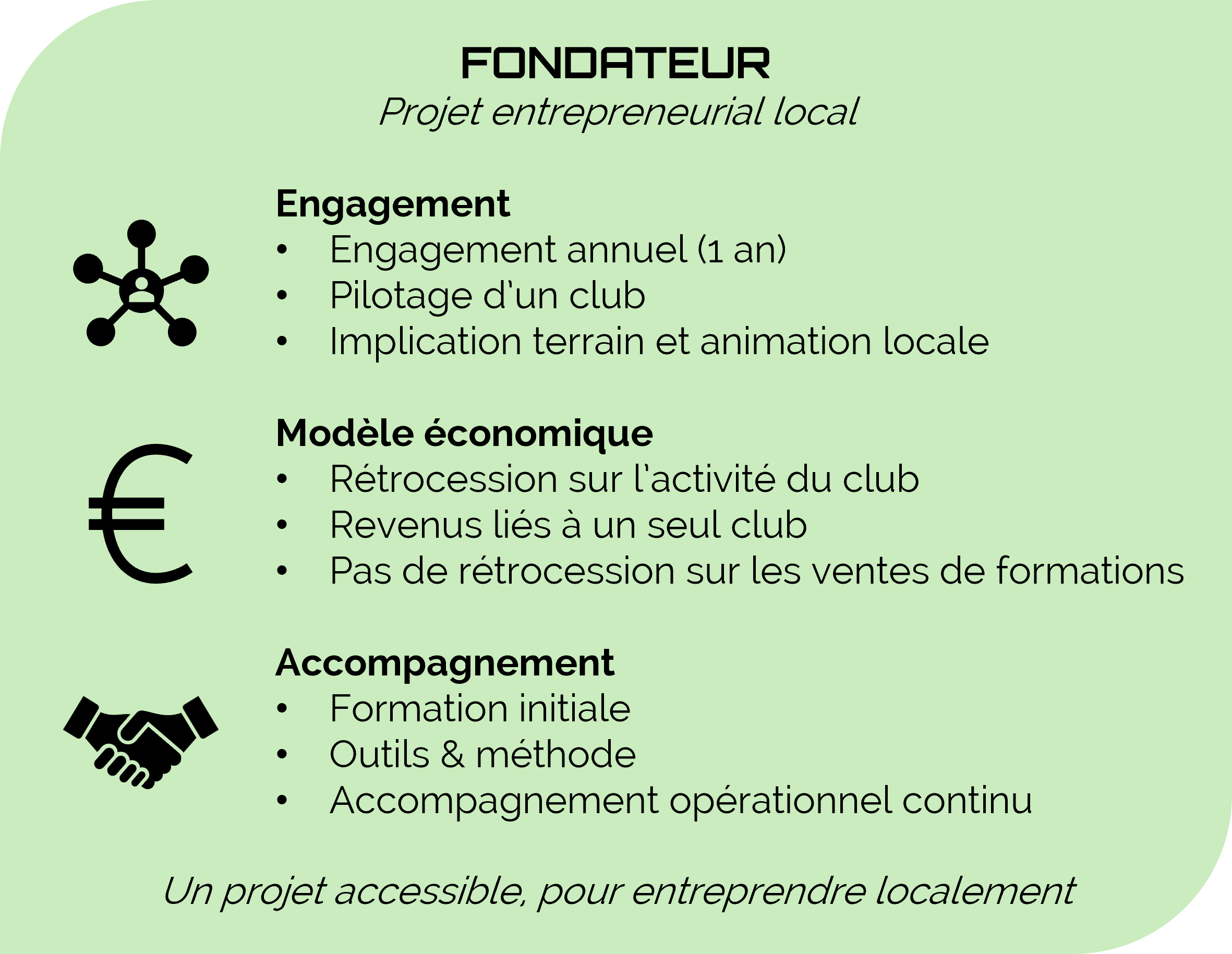 Tu n’es pas satisfait des offres proposées par les clubs d’affaires autour de toi, ton activité est systématiquement représentée, ou tu souhaites simplement fédérer des entrepreneurs de ton Territoire, nous pouvons t’accompagner dans le lancement et la création de ton club.